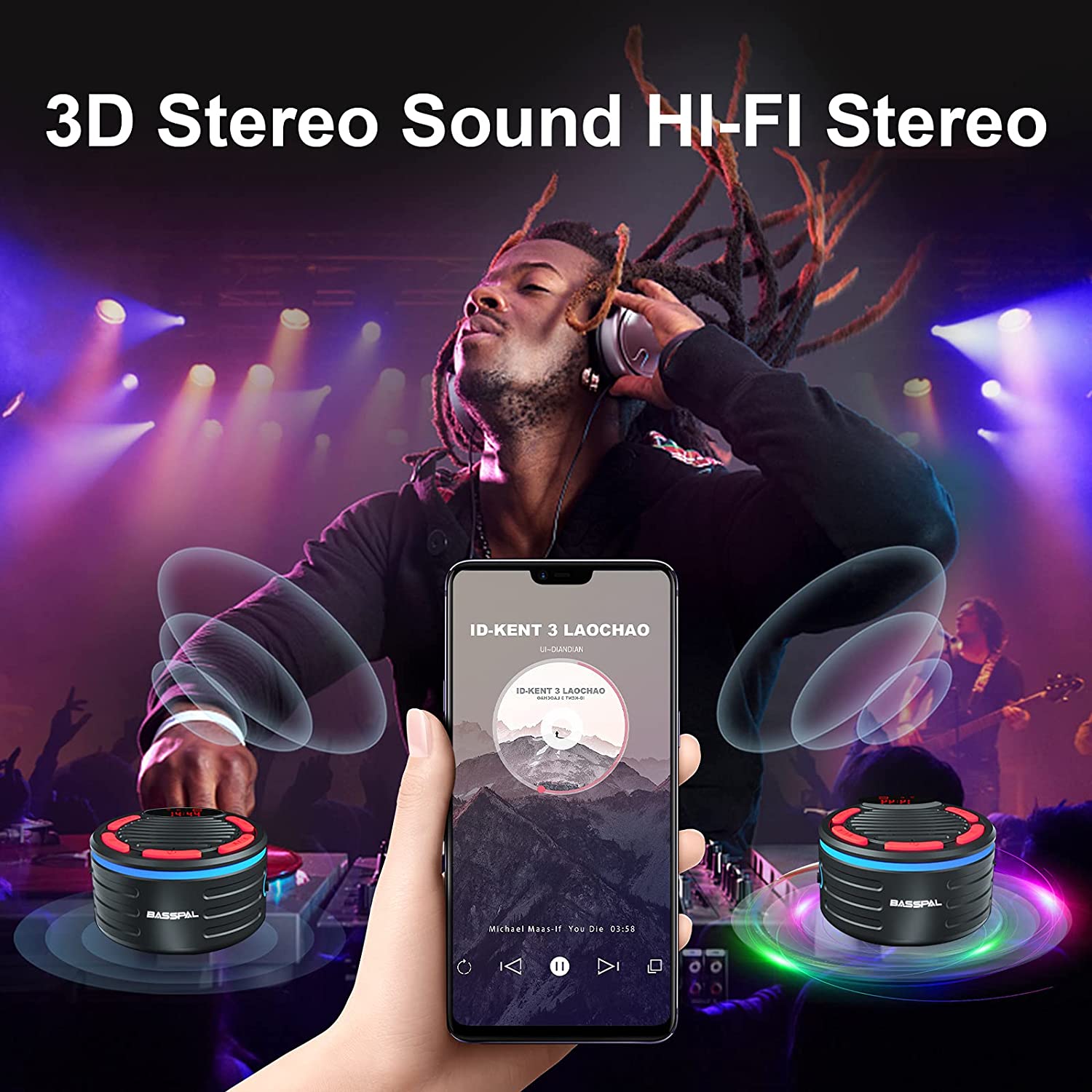 IPX7 Waterproof Shower Bluetooth Speaker BassPal Portable Wireless Outdoor Bluetooth Speaker for Shower Beach Pool Outdoors Party Travel Hiking, Bluetooth Speaker with Suction Cup LED and FM Radio