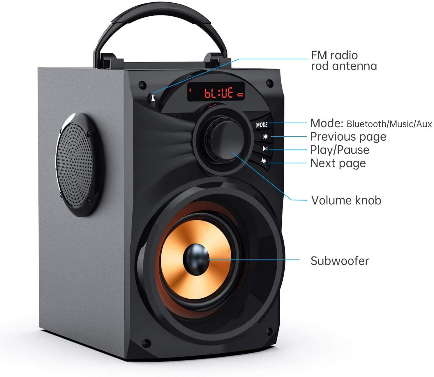 Portable Bluetooth Speaker with Subwoofer Wireless Speakers Outdoor/Indoor Big Speaker Support Remote Control FM Radio TF Card LED Lights MP3 Player Party Speaker for Home Camping iPhone Computer PC